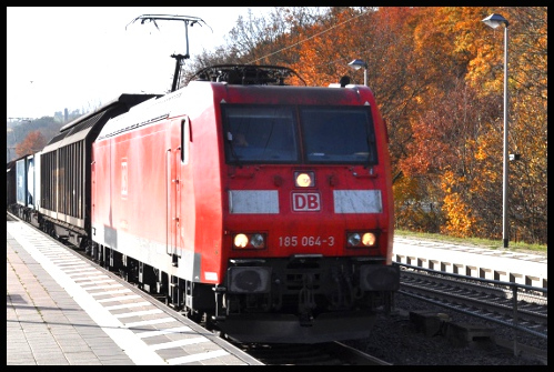 185 064 am 04.11.2011 im Haltepunkt Reichensachsen